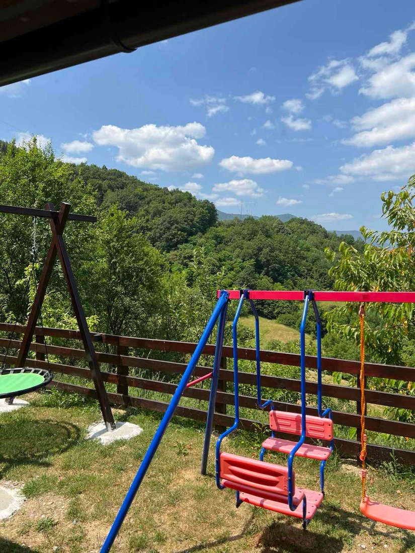 Uživaćete u pogledu sa velike natkrivene terase. Veliki zidani roštilj je u dvorištu kao i sto i klupe za odmor. Tu je i kutak za najmlađe, drvena kućica sa toboganom i ljuljaškom. U dvorištu ima mesta za parking.